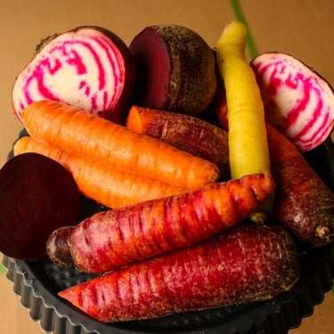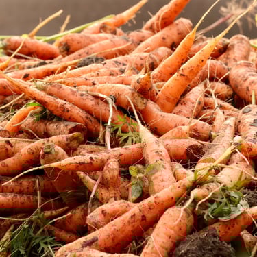 Cam owns our partner farm Carrots by Cam. He grew up on a mixed farm near Indus, AB. Cam discovered at a young age that he would rather fix a tractor and drive it than ride a horse, so it’s no surprise that the farm relies on him to keep the mechanicals humming. Years ago, while helping Rosemary grow and deliver her many organic potatoes, he noticed there was a need for other flavourful and healthy root veggies. Cam’s farm is dedicated to meeting this need, focusing on carrots, beets, and parsnips. Cam works passionately for many hours to maintain the highest standards—and he’s still most at home with “just driving the tractor”.